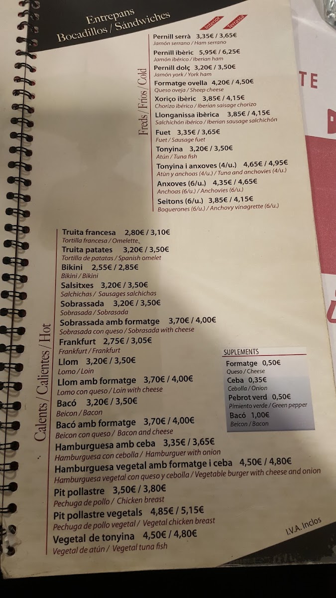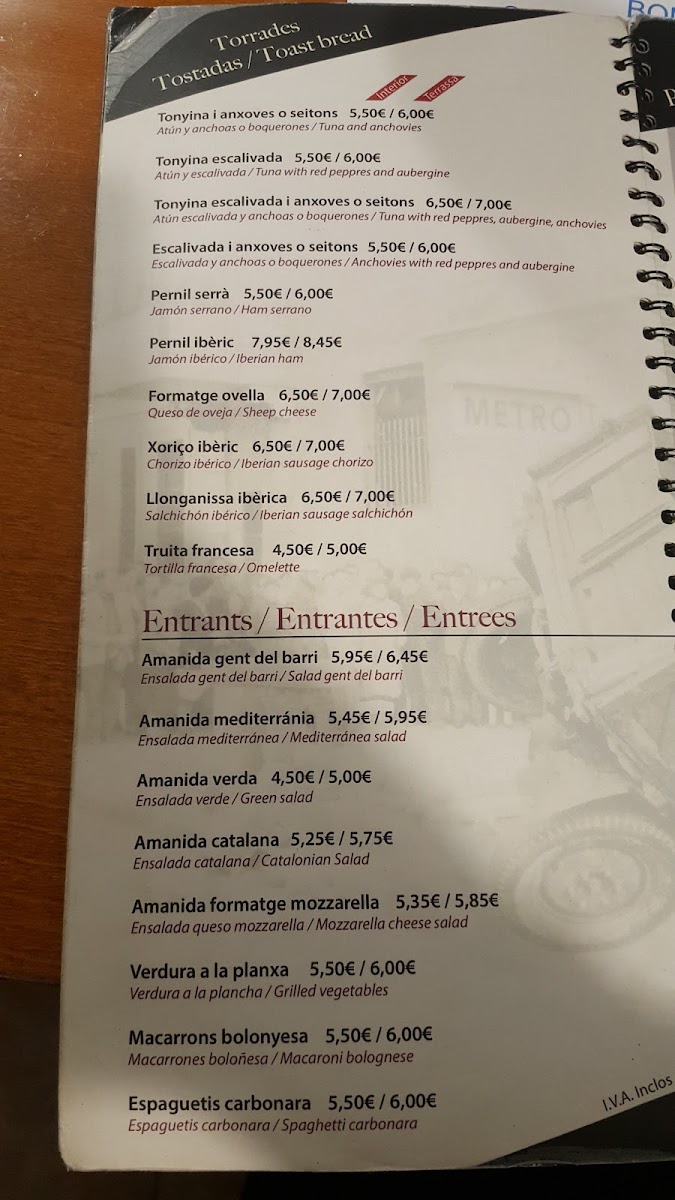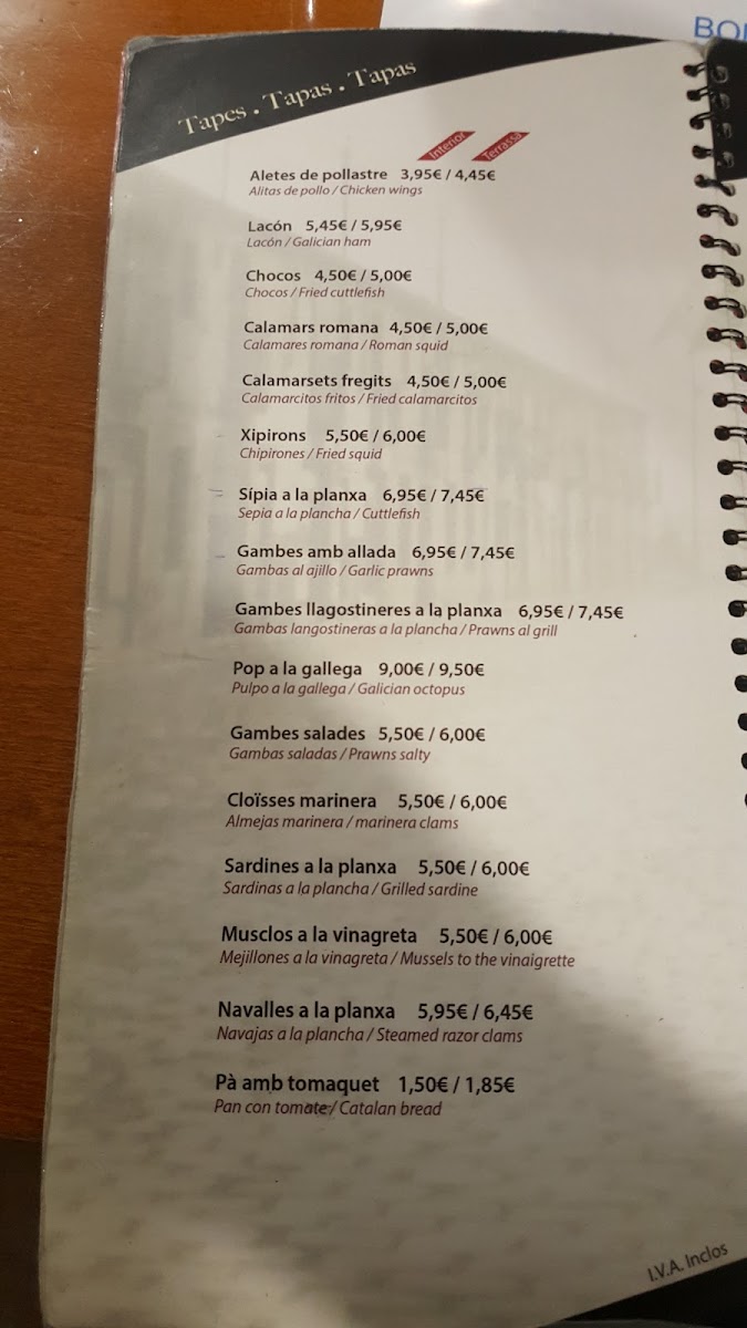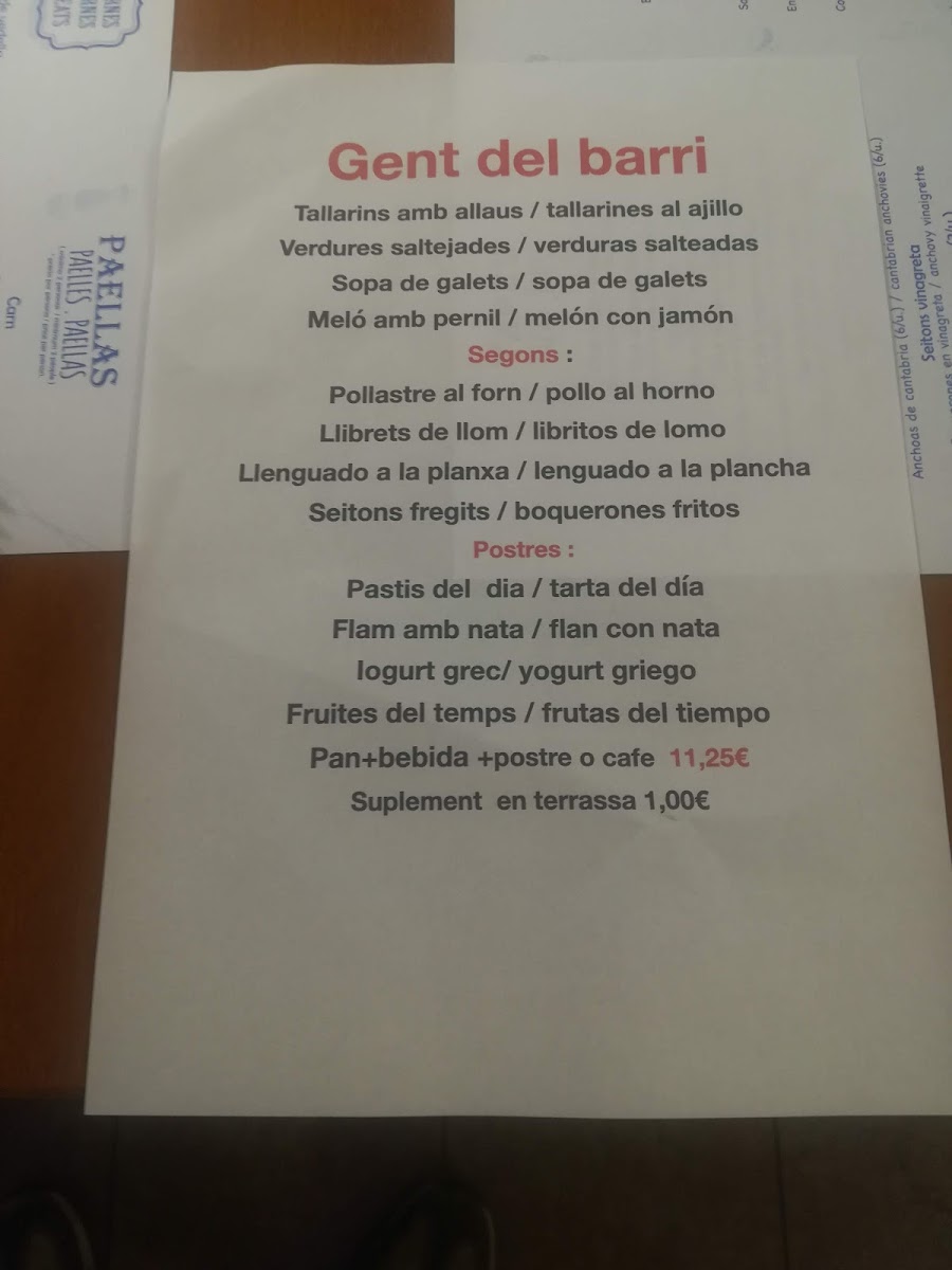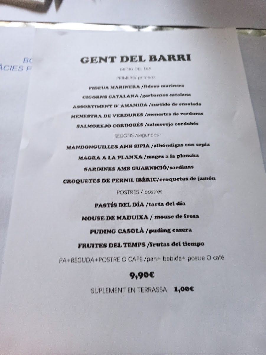 Gent Del Barri Menu